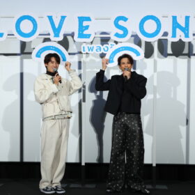 世界的な人気を誇る大ヒットBLドラマ「2gether」を手掛けたタイのチャンプ・ウィーラチット・トンジラー監督がメガホンをとり、W主演を森崎ウィンと向井康二(Snow Man)が務める、映画『(LOVE SONG)』。東京とバンコクを舞台に、未完成のラブソングが二人の運命を繋ぐ“ピュアラブストーリー”が話題となっている本作の、タイでの撮影から、怒涛の宣伝稼働まで2人が作品と向き合い続けた“濃密な400日”を振り返るダイジェスト映像が公開された。