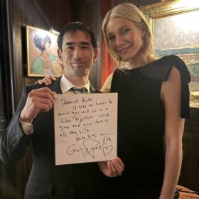さらに、川口氏より、ニューヨークプレミアでのオフショットも到着。グウィネス、ジョシュ監督のサイン色紙とともに写った2ショットに加え、キャスト&監督の仲睦まじい集合写真など4点が届いた。