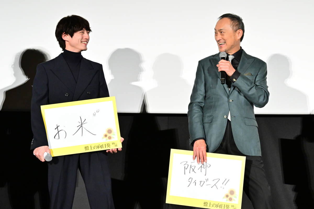 柚月裕子の同名小説を原作に、坂口健太郎と渡辺謙の魂の演技バトルで魅せるヒューマンミステリー『盤上の向日葵』。話題となっている本作の公開を控え、都内劇場でジャパンプレミアが行われた。