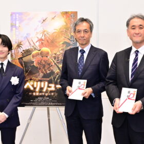 舞台挨拶前には、主演の板垣が本作品のアフレコ収録前の今年4月にペリリュー島を訪れた際の特別映像を上映。併せて、この日の上映会の売上の一部が、「一般社団法人 日本戦没者遺骨収集推進協会」「日本赤十字社」に寄付されることも発表された。