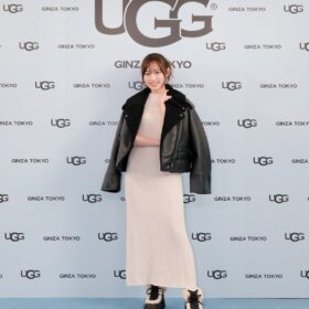 新たな店舗に「すごく素敵な空間でした。普段撮影現場でも履いているんですが、店舗で実際に目にするとテンション上がりますし、あれも欲しいこれも欲しいとなりますね。特に、ブーツとジャケットが気になりました。すごく寒がりなので、この冬はUGGでお出掛けしたいなと思いました」と感想を語る。