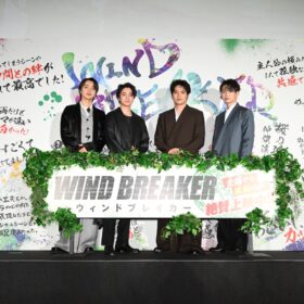 公開中の映画『WIND BREAKER/ウィンドブレイカー』の舞台挨拶が12月17日に開催され、主人公・桜遥役の水上恒司、楡井秋彦役の木戸大聖、蘇枋隼飛役の綱啓永に加え、急遽登壇が決まった杉下京太郎役のJUNONも駆けつけ、会場は大きな歓声に包まれた。
