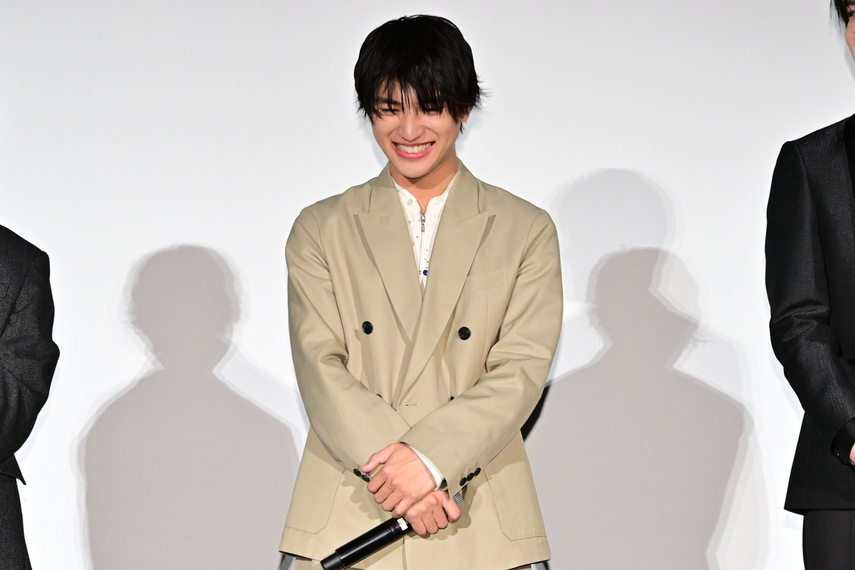 蘆名家第 17 代当主・蘆名盛興役の杉江は「撮影初日にホテルの温泉に入ったら、主演の飛羽君がいて。すっぽんぽん同士で初めましての挨拶をして気まずかったけれど、一発目がすっぽんぽんだったのでもう何も怖くなくなった。飛羽君は僕の13歳下。さっきそれを聞いて胸がギュン!となった」と笑わせた。