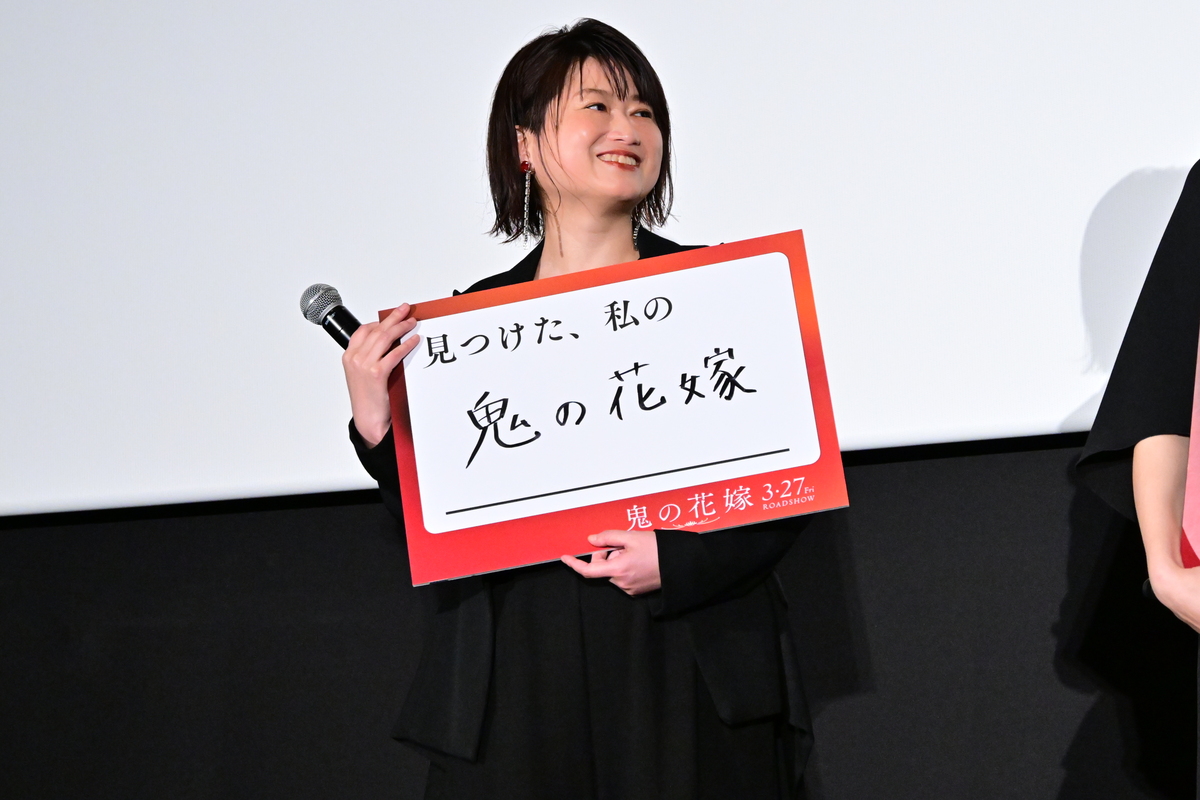劇場公開を明日に控えて永瀬は「(公開の)前日が一番緊張します。明日からどれくらいの方々に見ていただけるのか未知なので、楽しみでもあり、今が一番“鬼”緊張しています。明日からも『鬼の花嫁』を盛り上げていきたいです」と鬼にかけて心境を明かし、吉川も「撮影がとても前というわけではないので、あっという間に公開する感覚です。上映後のみなさんが楽しかったと拍手してくださったので、私の肩の荷も下りました。とても嬉しいです」と声を弾ませた。